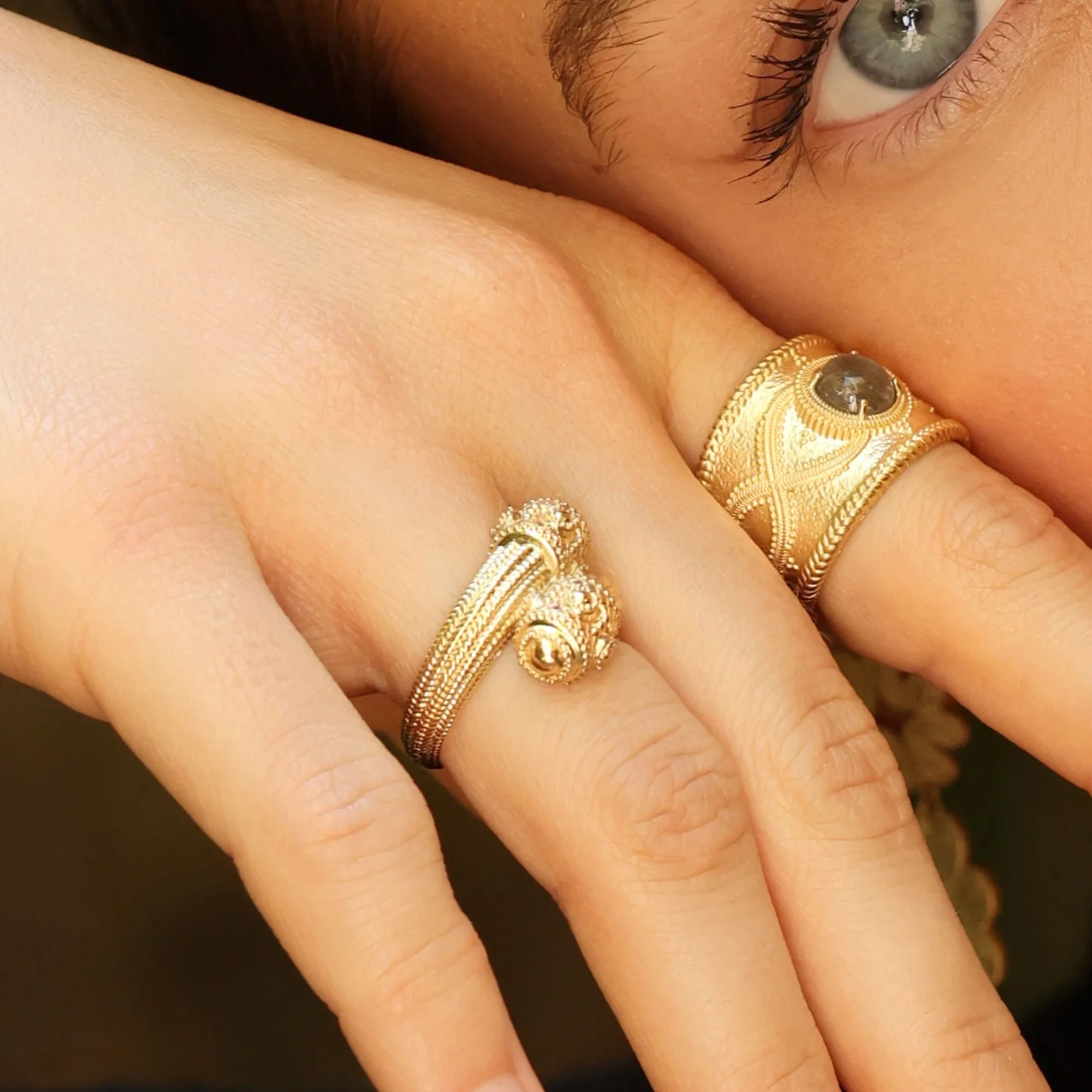 A elle seule, ce bijou combine l’essence du bijou grec ancien et l’élégance, de par les détails minutieux de son motif et son volume généreux.