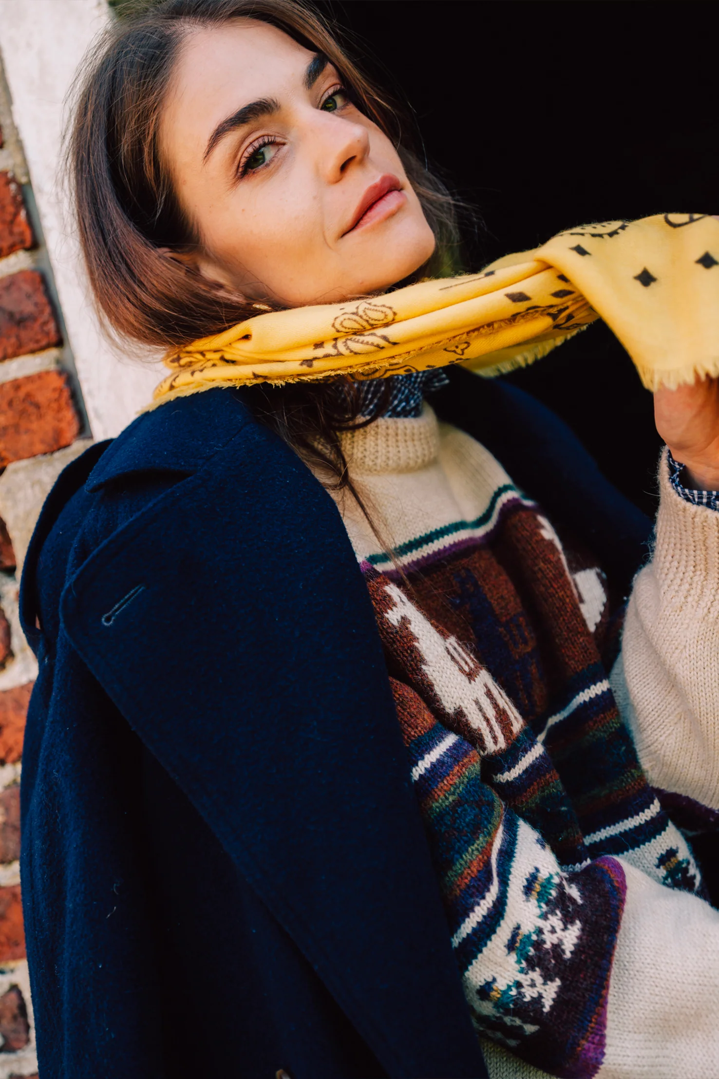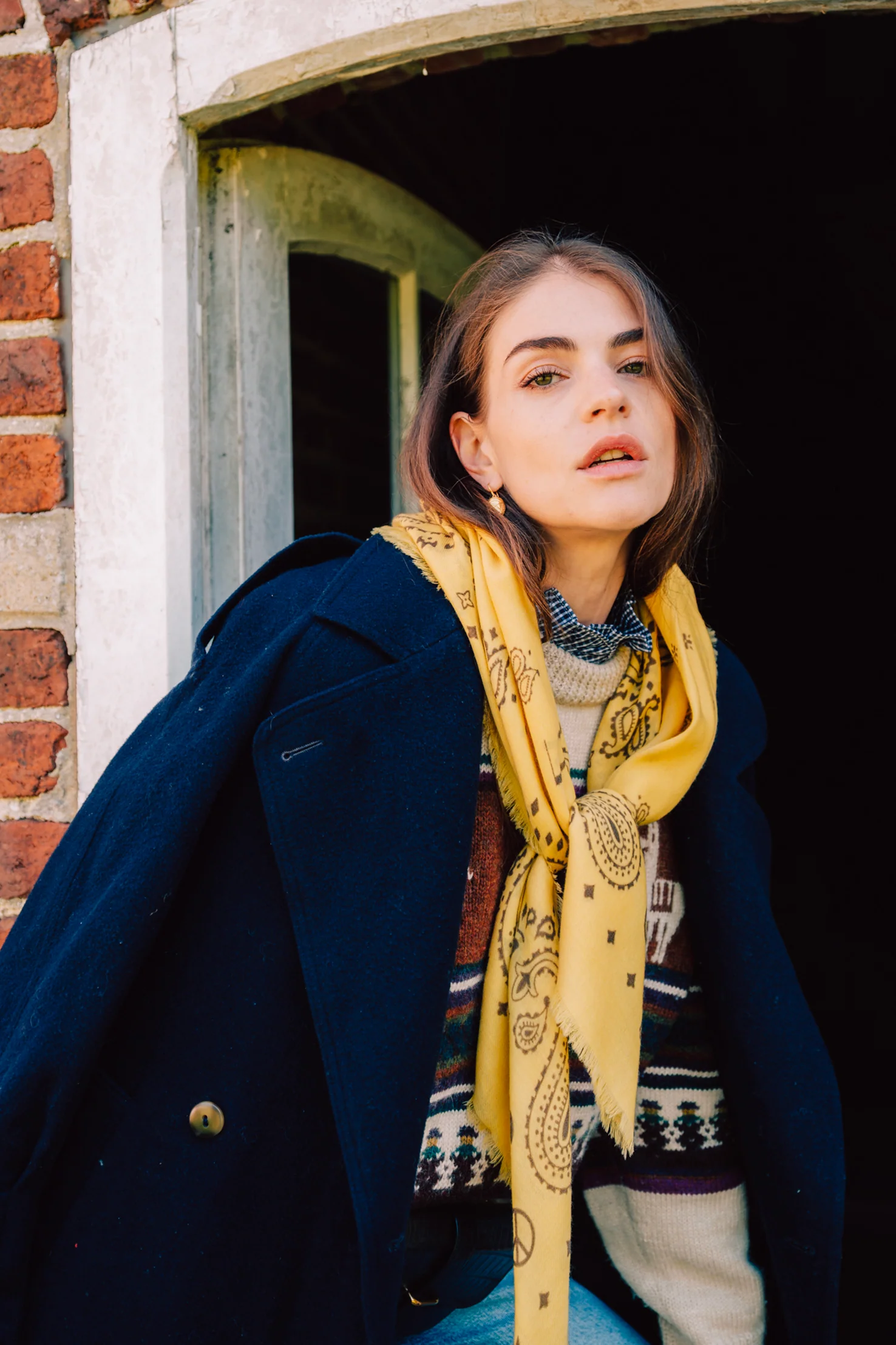 Découvrez les bandanas en laine Antan alliant l’élégance des motifs cachemire et l’esprit bohème. Fabriqués à la main en Inde, ces bandanas 100% laine d’un mètre carré, avec leurs franges délicates, arborent des motifs « Peace & Love » pour une allure hippie chic et élégante. Pour être au chaud tout l’hiver et tout en douceur.