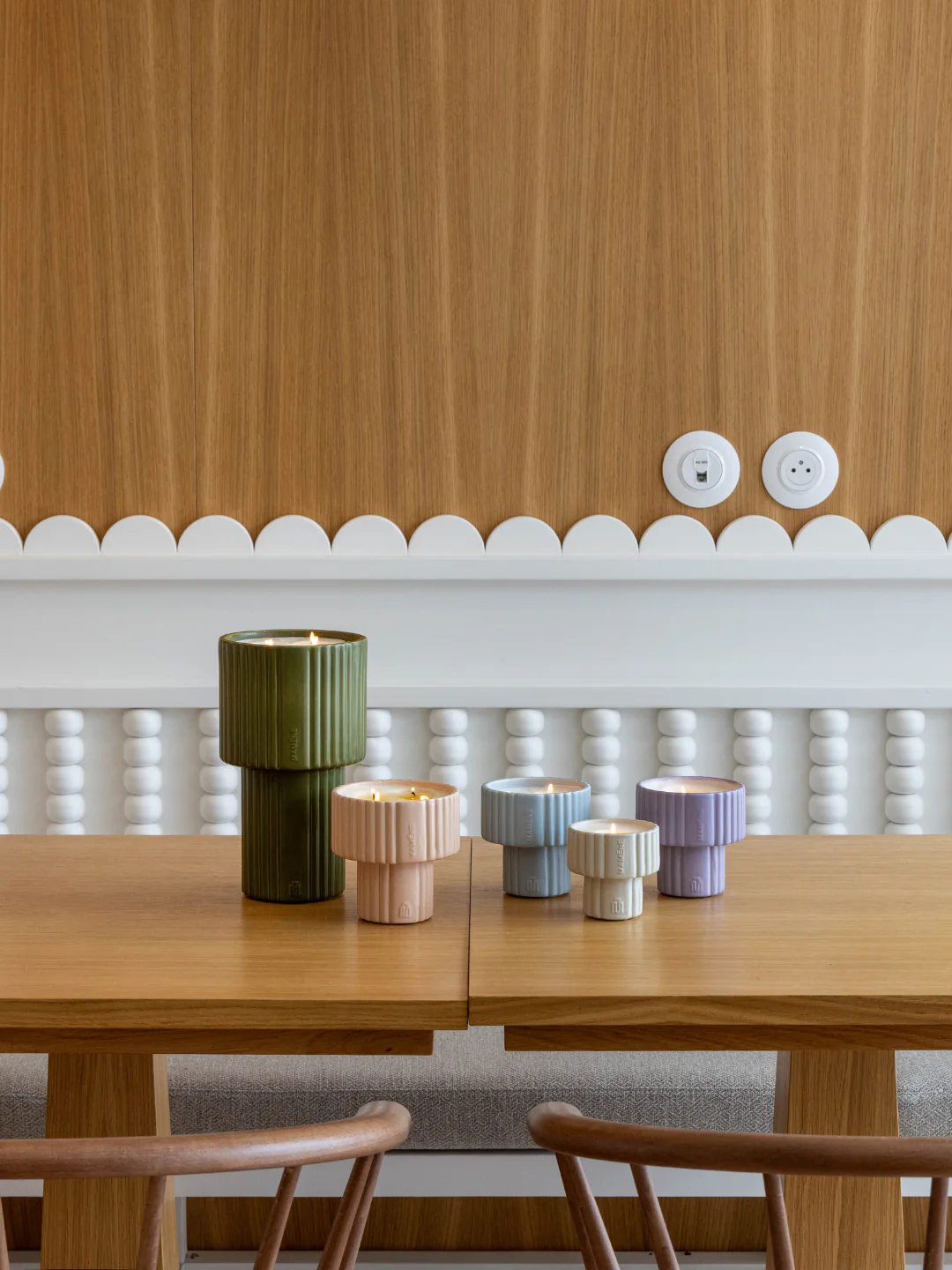 LA BOUGIE PARFUMÉE RECHARGEABLE LAMPE S’INSPIRE DES LIGNES DES ANNÉES 70. LA SILHOUETTE EST OPULENTE ET LES DIMENSIONS SONT MONUMENTALES. LA LAMPE EST SCULPTURALE ET S’EXPOSE COMME UN TROPHÉE.