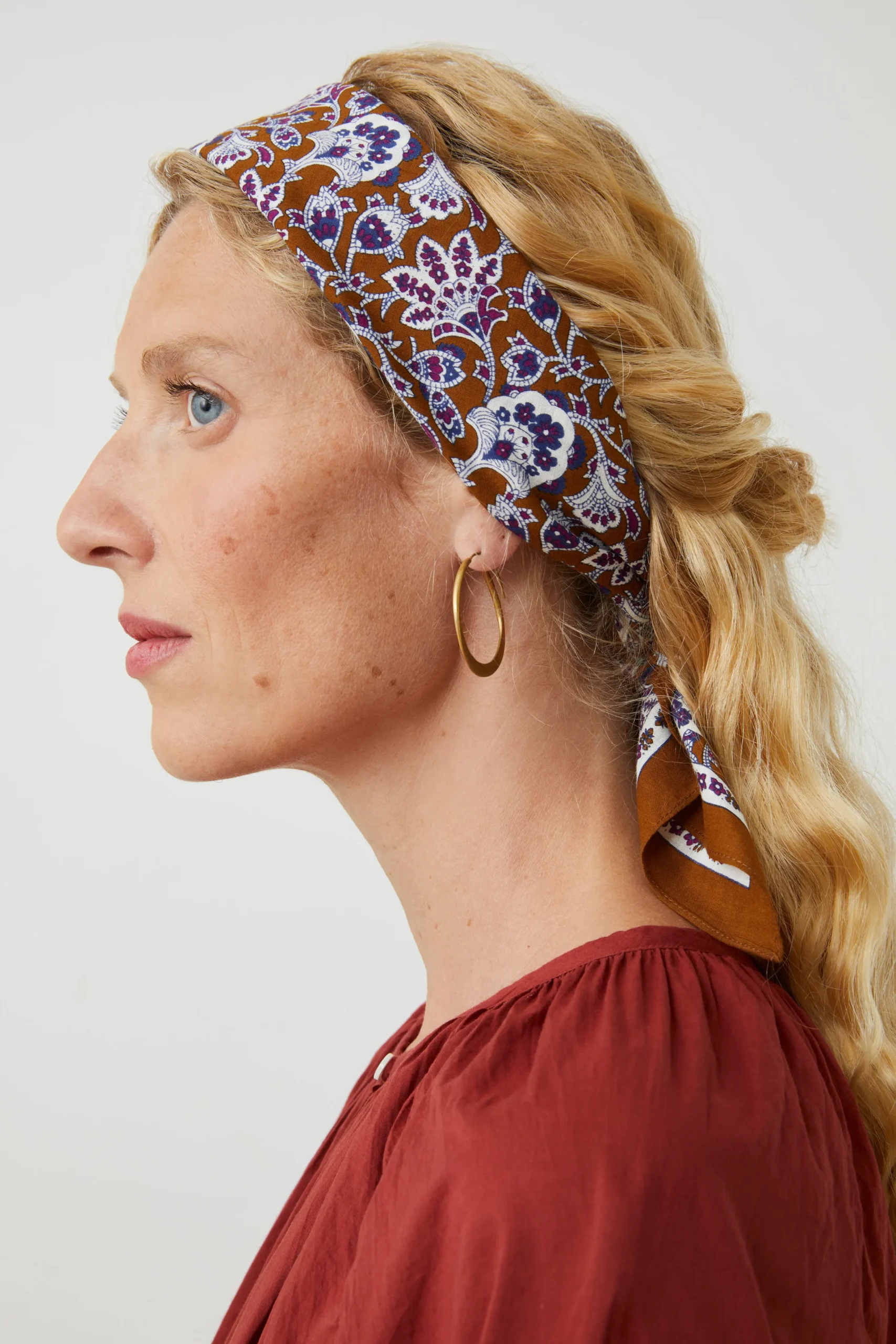 Le foulard India s’inspire des fleurs indiennes pour révéler un imprimé paisley délicat et des couleurs vives qui évoquent l’exotisme et l’élégance estivale. Confectionné en coton léger, ce carré devient un accessoire précieux, à nouer autour du cou ou dans les cheveux, pour apporter à vos silhouettes une touche graphique, fraîche et lumineuse. Doux au toucher et facile à porter, il capture toute la légèreté et la vivacité d’un été en fleurs.