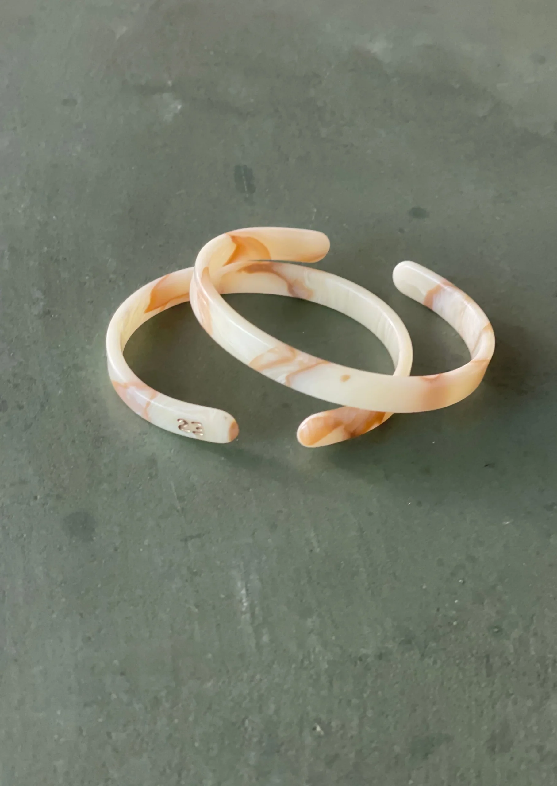 Ces bracelets,  en acétate de cellulose Italien, sont délicatement polis à la main.
