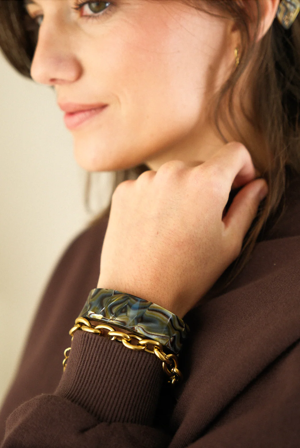 Ces bracelets,  en acétate de cellulose Italien, sont délicatement polis à la main.