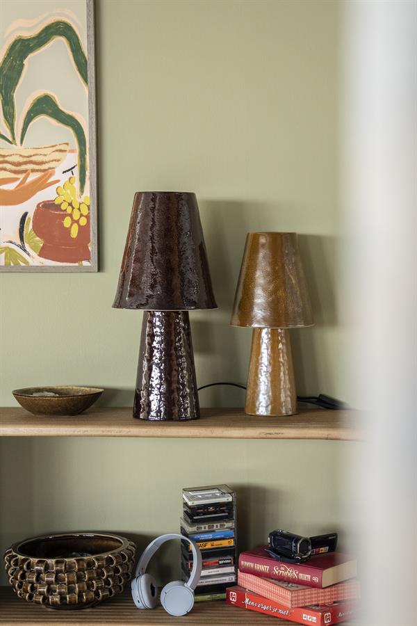 Cette magnifique lampe, en grès,  émaillée à la main, séduira celles et ceux sensibles au design rétro…Elle trouvera aisément sa place sur une table d’appoint ou sur n’importe quel autre meuble pour une ambiance cosy !