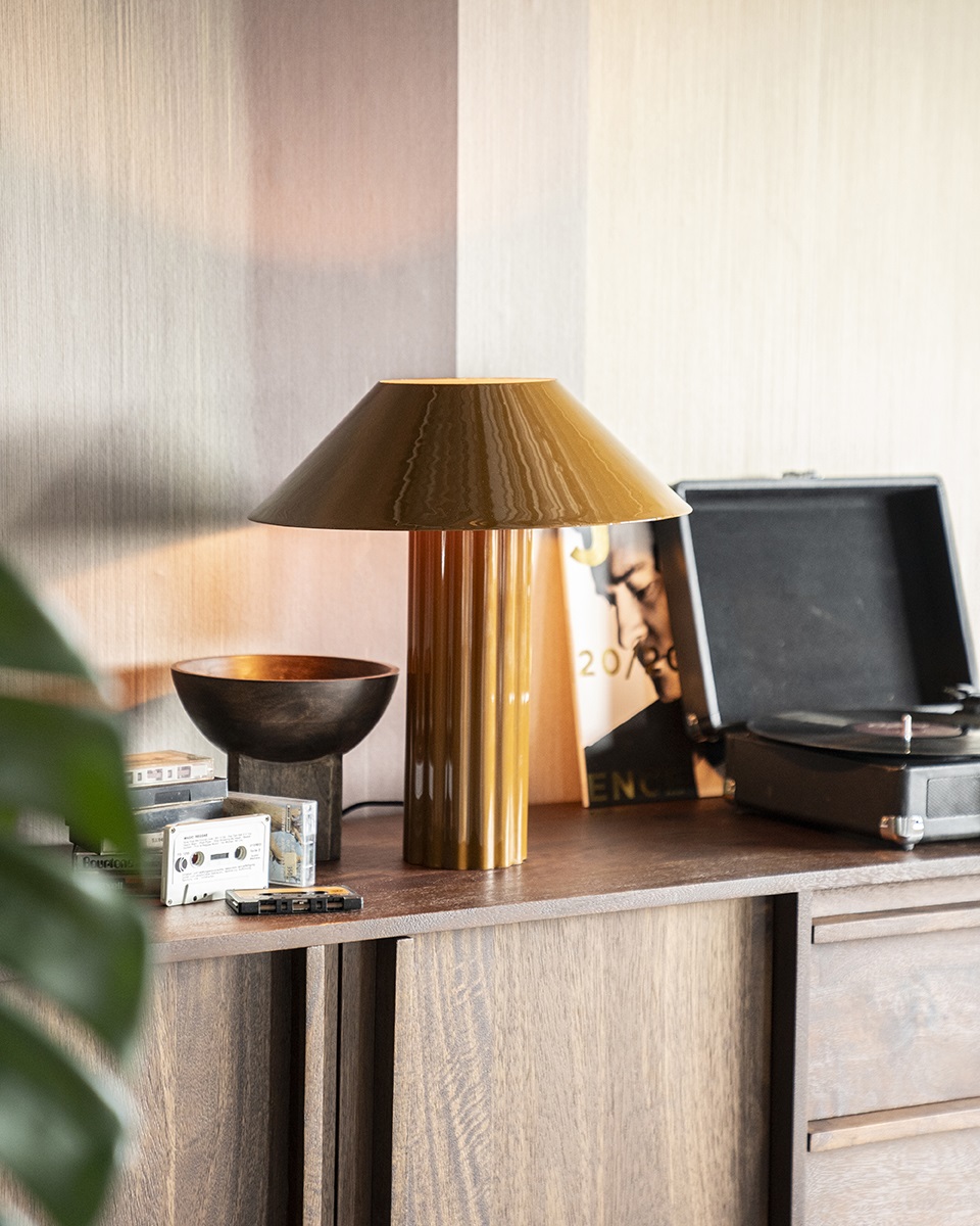 Découvrez cette lampe de table qui transforme votre espace avec une élégance discrète et un design raffiné. Cette pièce est conçue pour ceux qui apprécient l’esthétique moderne et la fonctionnalité. La couleur moutarde de la lampe s’harmonise parfaitement avec divers styles d’intérieur, créant une atmosphère chaleureuse et accueillante dans votre salon, chambre ou bureau. Fabriquée en fer avec une finition émaillée, elle assure une durabilité exceptionnelle tout en affichant un aspect chic et sophistiqué.
