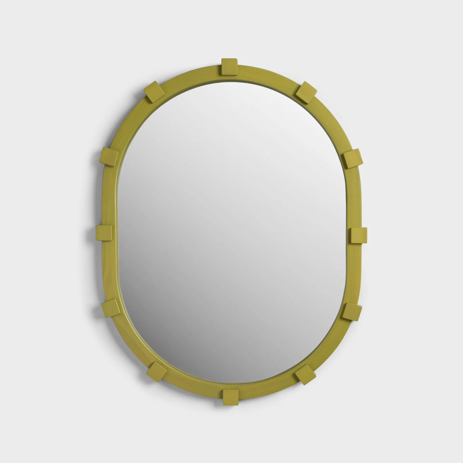 Ce miroir est inspiré de la décoration style folk, où l’on voit souvent des éléments décoratifs répétitifs. Avec un clin d’œil subtil au cubisme, ce miroir combine un design ludique et intemporel.