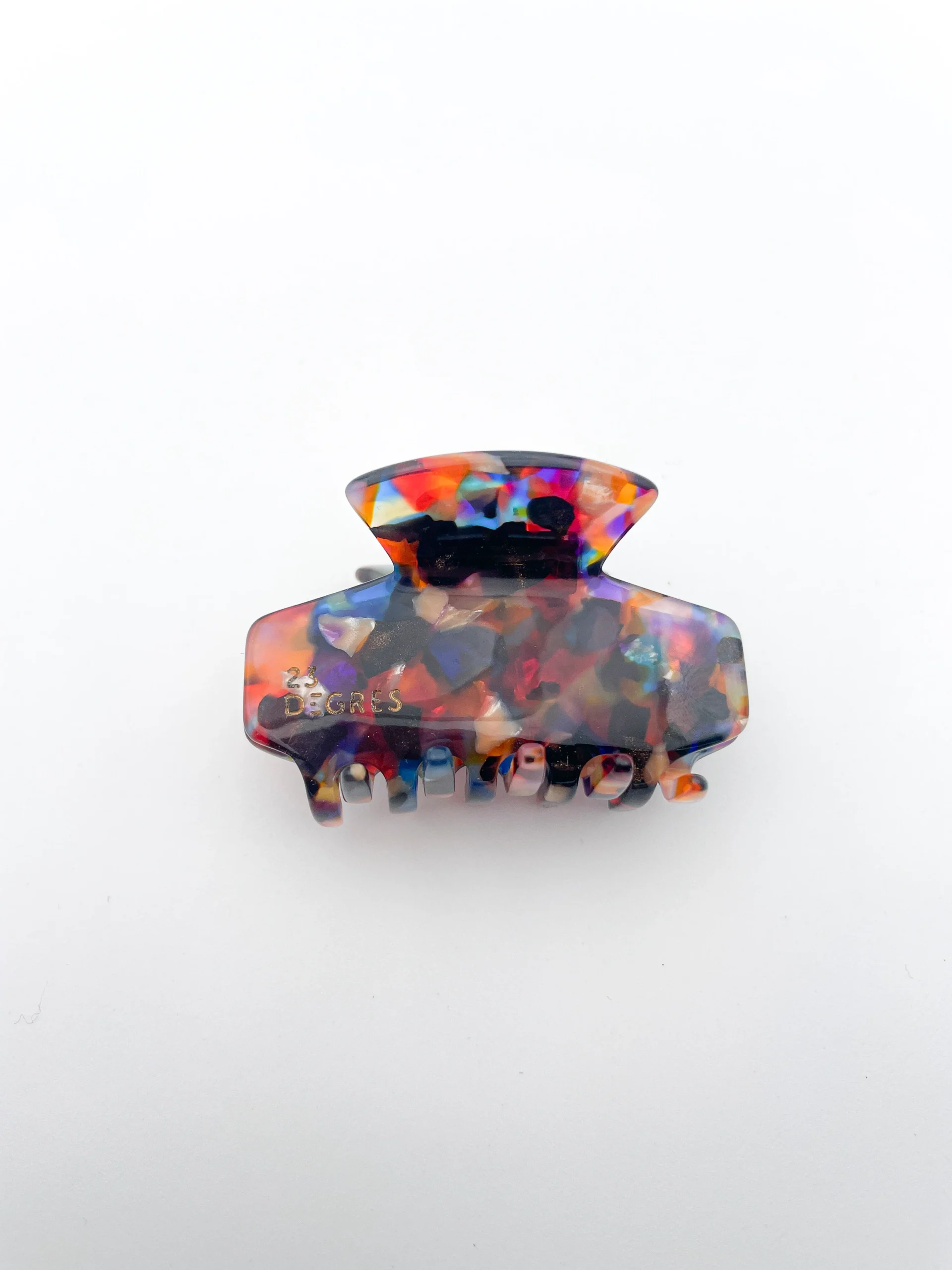 Comme toutes les pinces et barrettes à cheveux 23 DEGRES, la pince à cheveux rectangle Sunny est fabriquée à la main dans le Jura et est composée d’acétate de cellulose (fibre de coton et de bois) qui provient majoritairement de France (sinon d’Italie).