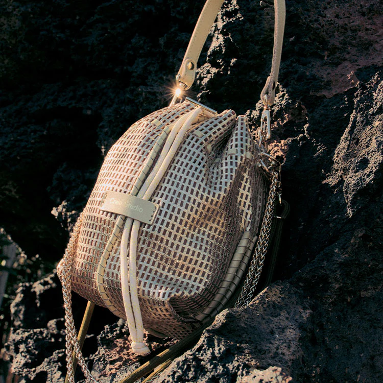 Confectionné en cuir d’agneau or champagne perforé, il séduit par sa structure légère, son style ajouré unique, et son allure urbaine qui en fait un accessoire mode incontournable.